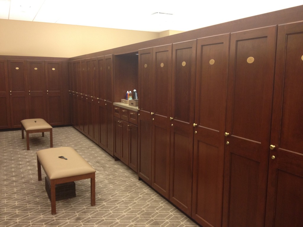 The goal of the latest upgrade, of course, was to maintain an air of luxury and style without sacrificing comfort. Achieving this was simply a matter of removing the existing lockers and reinstalling them along with new lockers in a new configuration. This gave the locker room a fresh, updated look while allowing new members to take full advantage of the new custom wood lockers when they are visiting the country club.